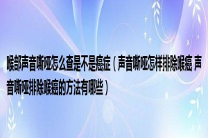 下面由养生王来解答问题。喉部声音嘶哑怎么查是不是癌症,声音嘶哑怎样排除喉癌 声音嘶哑排除喉癌的方法有哪些很多人还不知...