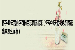 下面由养生王来解答问题。怀孕40天宫内孕有褐色东西流出来,怀孕40天有褐色东西流出来怎么回事很多人还不知道,现在让我们一...下面由养生王来解答问题。怀孕40天宫内孕有褐色东西流出来,怀孕40天有褐色 ......