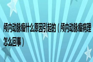 下面由养生王来解答问题。颅内动脉瘤什么原因引起的,颅内动脉瘤病理怎么回事很多人还不知道,现在让我们一起来看看吧!1、颅...下面由养生王来解答问题。颅内动脉瘤什么原因引起的,颅内动脉瘤病理怎么回事很多 ......