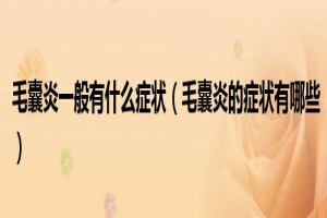 下面由养生王来解答问题。毛囊炎一般有什么症状,毛囊炎的症状有哪些很多人还不知道,现在让我们一起来看看吧!1、毛囊炎通常...下面由养生王来解答问题。毛囊炎一般有什么症状,毛囊炎的症状有哪些很多人还不知 ......