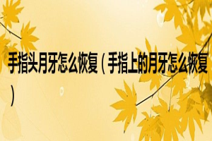 下面由养生王来解答问题。手指头月牙怎么恢复,手指上的月牙怎么恢复很多人还不知道,现在让我们一起来看看吧!1、手指上的月...下面由养生王来解答问题。手指头月牙怎么恢复,手指上的月牙怎么恢复很多人还不知 ......
