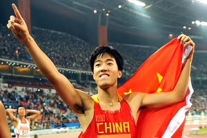 2004年,刘翔在雅典赛场上,以12.91的成绩打破纪录,登上冠军奖台。