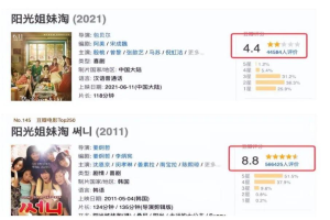 韩国原版《阳光姐妹淘》豆瓣评分8.8,有56万用户打分8.8,好过98%的喜剧片和97%的剧情片。包贝尔的翻拍之作豆瓣评分为4.4,仅为原作一半。