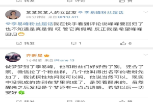 3、粉丝咎由自取。在李易峰的微博被封掉之后,他的微博超话还没被封,他的粉丝在里面说发言真的是让人毁三观!有的说嫖娼怎么了?是个男人都会犯的错误!还有的说无论他的李易峰干什么事,他都会永远支持他,犯法也会支持他?