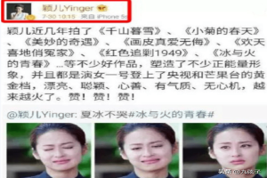 2017年,“颖儿本人”在自己的官博发文,将全部赞美之词全部送给了自己,之后这一波操作,被颖儿发现后,急忙秒删。