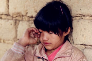 面对着镜头,小小的李勒优捂着裤子,手不敢挪动一分一寸,生怕镜头拍到她已经破旧不堪的裤子,那样的话,她小小的自尊心就会被伤的体无完肤了。