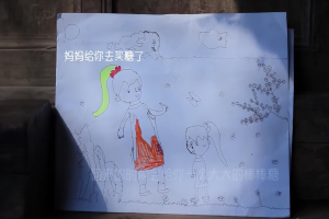 她没见过妈妈,就把想象中的妈妈画在纸上。