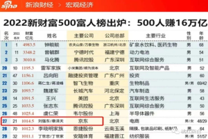在2022年"新财富500富人榜"中,刘强东、章泽天夫妇就以 1014.5 亿元的财富位居第27位。(跟2021年的第21位比,略有下降)