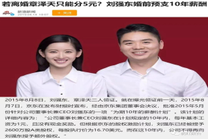2015年8月7日,章、刘被曝光领证的前一天,集团董事会通过了三个月前就提出的刘强东10年薪酬计划。