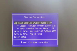 注:第一个是U盘启动盘,第二个是我的光驱(DVDRAM,一般电脑没有这个项目);第三项是我的硬盘(Y6-120G表示型号和容量)。