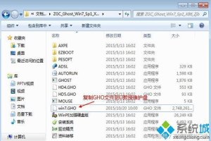 2、将win7.GHO将文件复制到U盘GHO文件夹,或复制到需要安装系统的计算机,除了系统安装盘的其他磁盘。
