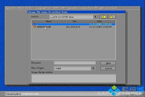 9.选择U盘或存储WIN7.gho文件镜像的路径,点OPEN。