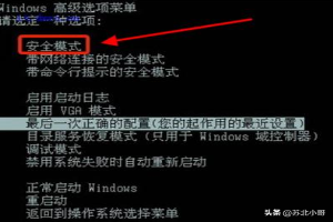 重新启动计算机并按下键盘F8继续间歇按,然后按选项菜单界面。我们选择安全模式并按下Enter键。