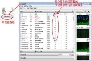 在"线程数";在栏目中,所有软件的线程都非常清晰地显示出来。这些垃圾软件不断消耗计算机资源,通过线程清晰区分。数字越大,占用的资源就越多,然后通过描述栏锁定软件,然后删除它,它可以大大提高计算机的运行速度。