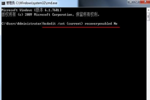 2、在cmd输入命令:bcdedit /set{curren recoveryenabled No按enter,如下图所示: