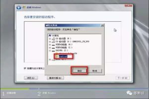 1.在步骤中你想要Windows如果硬盘无法识别,则需要手动加载,因为缺乏阵列卡驱动。点击[加载驱动程序]之后选择[浏览]找到相应的阵列卡驱动并选择。