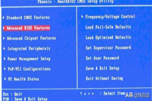 1.重启计算机,按快捷键进入BIOS设置界面,然后选择Advanced BIOS Features”。
