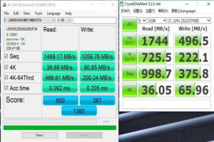 E580是联想自己用的OEM产品,型号是LENSE20512GMSP,支持NVMe协议,容量256GB,内置南亚256MB DDR3缓存,闪存颗粒来自东芝。在AS SSD Benchmark中,这块256GB的SSD总分为1360,顺序读写超过1460MB/s、1050MB/s;4K随机读取36MB/s、随机写入80MB/s。