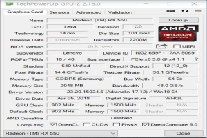 我们今天测试的重点是Thinkpad E580所搭载的AMD RX 550 2GB拥有640个流处理器的独立显卡频率为900MHz,2GB DDR5显存、频率6000MHz、位宽64bit、显存带宽48GB/s。从流处理器的规模,RX 550 640个流处理器远远超过MX 150的384个,但是900MHz基本频率略低。从流处理器的规模,RX 550 640个流处理器远远超过MX 150的384个,但是900MHz基本频率略低。
