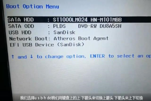 我们选择u s b h dd我们用键盘上的上下箭头切换上下箭头