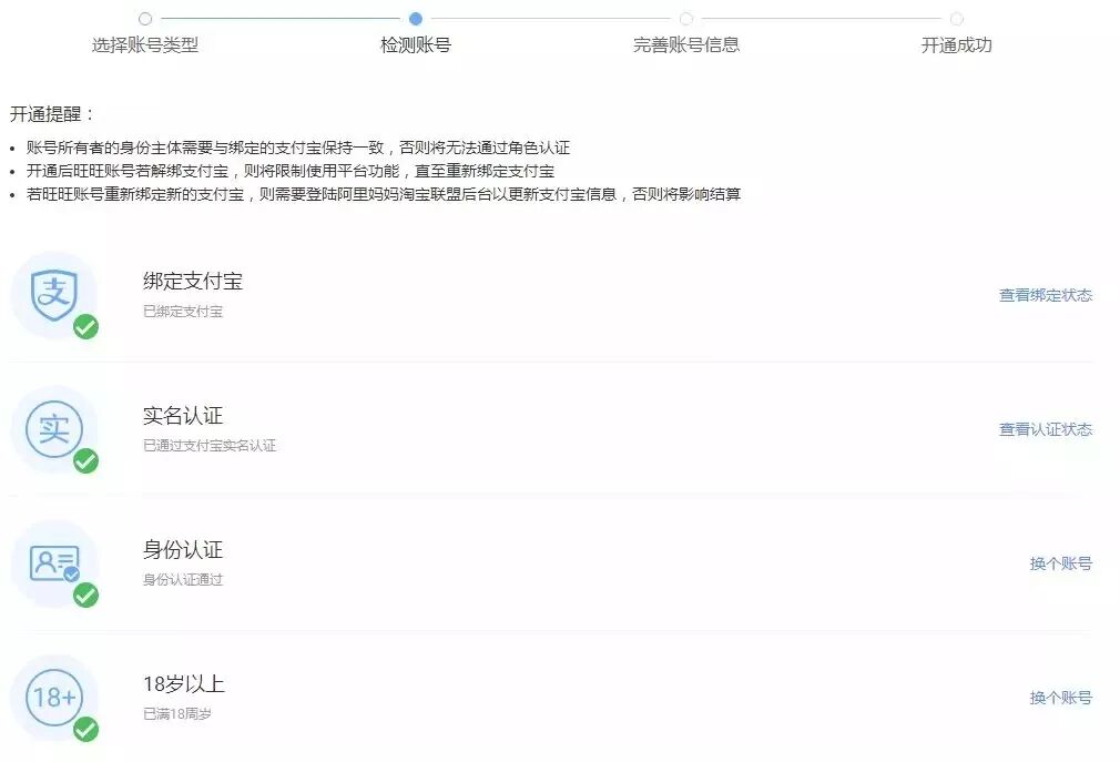 所以小编推荐大家选择达人号,在注册时候我们需要扫码登录自己的某宝帐号,完成某付宝的绑定、实名认证、身份认证等多个检测。
