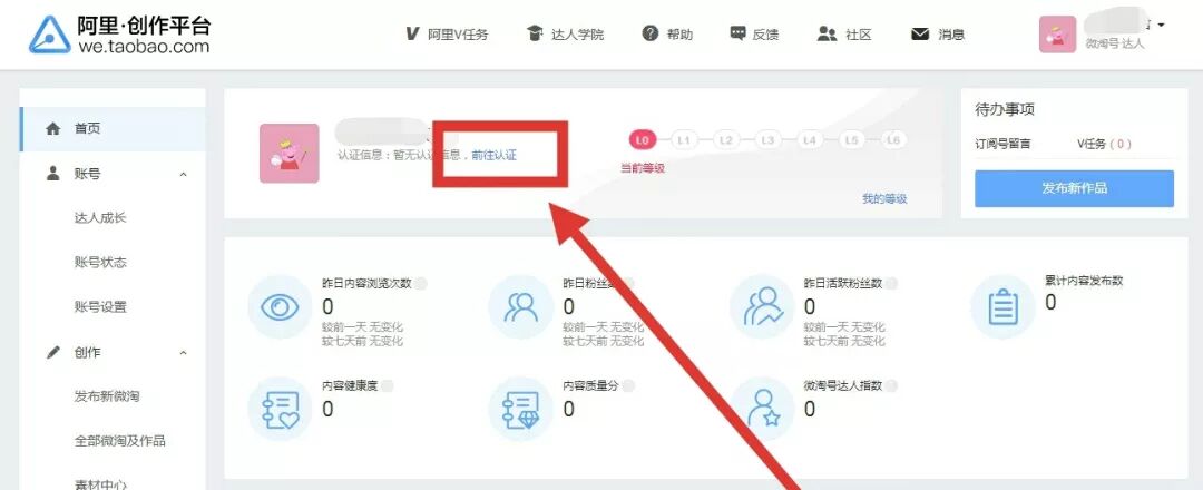 想要成为一个内容电商,我们首先得具备一个用来在微淘里发文的微淘号,所以我们得先开通微淘号。