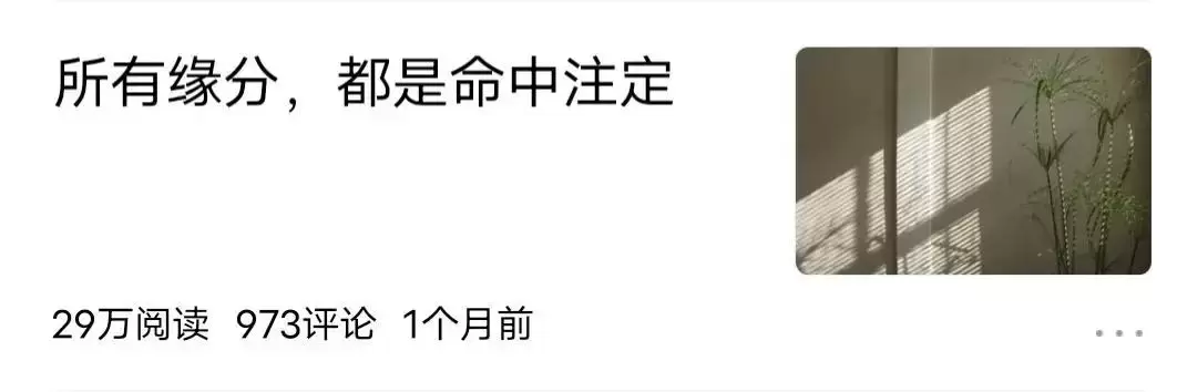 第一篇《所有的缘份,都是命中注定》,阅读29万。