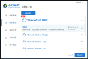 2.接下来,制作u盘启动盘,将u盘插入电脑,点击开始制作,然后选择要安装的镜像文件下载到u盘上。