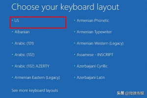 如果你有Windows 11或Windows 10恢复盘,启动时可使用其启动命令提示符。插入U盘,然后启动计算机并使用它UEFI/BIOS引导菜单选用U盘作为引导设备。恢复盘加载时,首先要求您选择键盘布局,选择您喜欢使用的。