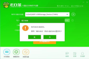 流程步骤:1.插入准备好的u盘,然后打开旧白菜装机版u盘启动盘制作工具,确认软件识别插入的u盘,点击开始制作