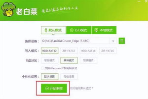 打开老白菜装机工具后,打开制作u盘,制作完成后