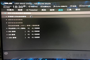因为每个主板BIOS设置不同,这里有华硕主板UEFI BIOS演示时,首先重启计算机,重复按下键盘Del键或者Delete键,进入主板BIOS在设置中找到并点击进入Advanced Mode(高级模式)F7键进入高级模式,我们将语言修改为简体汉语,点击启动(BOOT),进入安全启动(secure boot),找到操作系统的类型,我们将其修改为Windows UEFI模式。