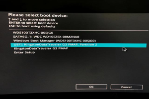 BIOS设置完成后,我们还需要修改硬盘格式GPT格式,我们将U盘PE工具插入电脑,在启动时反复按下F8键启动快捷键(以华硕主板为例)UEFI开头的U盘,如下图所示。